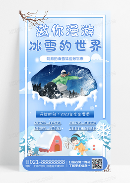 蓝色梦幻邀你漫游冰雪的世界滑雪手机文案海报