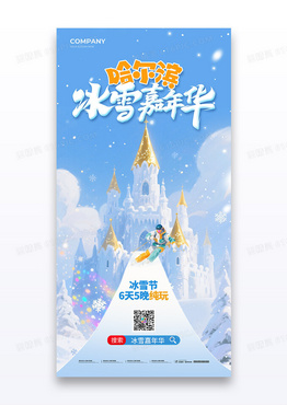 蓝色哈尔滨冰雪城堡嘉年华活动海报