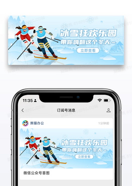 简约冬季冰雪乐园旅游攻略微信公众号封面图片