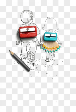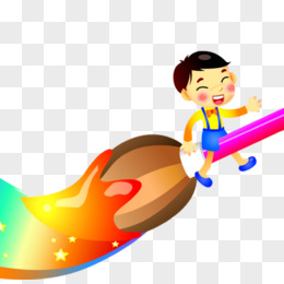 手绘卡通男孩与铅笔