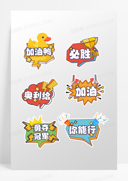 一组矢量卡通涂鸦风考试加油手举牌装饰套图系列四元素