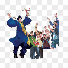 卡通手绘男生女生和教师毕业合影留念免抠元素