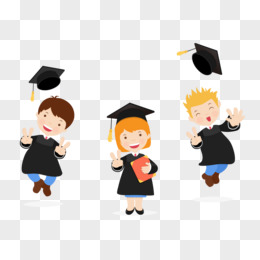 卡通毕业拍合影留念之男孩高抛学士帽元素