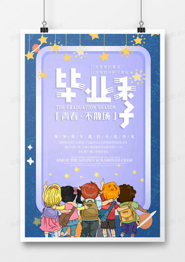 简约扁平卡通创意蓝色小清新同学毕业季背影海报