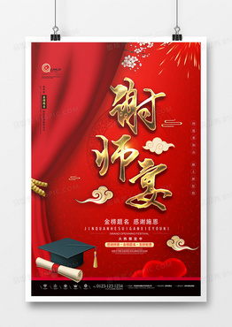 红色中国风谢师宴升学宴毕业饭聚会海报
