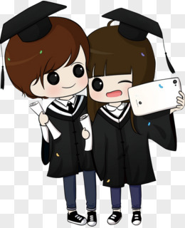 卡通手绘免抠女生穿学士服开心比耶元素