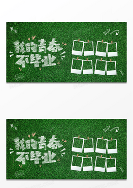 绿色清新风格草地人物阴影毕业合影墙宣传展板毕业季毕业照片墙