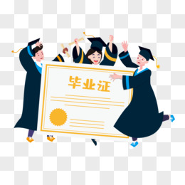 手绘卡通学生穿学士服合影留念插画免抠元素