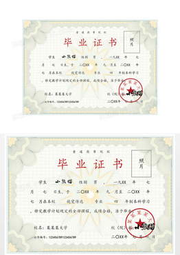 唯美花边普通高校毕业证书