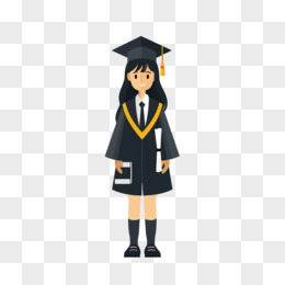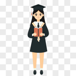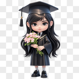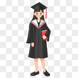 手绘风格穿着学士服的女孩抱着花束的插画的免抠元素