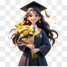 穿着学士服的女孩抱着鲜花的免抠元素