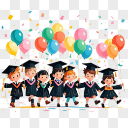 插画风穿学士袍的小学生元素