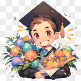 一个穿着学士服的大学生手捧着鲜花的免抠元素