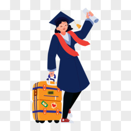 卡通手绘女孩儿拍单人毕业照免抠元素