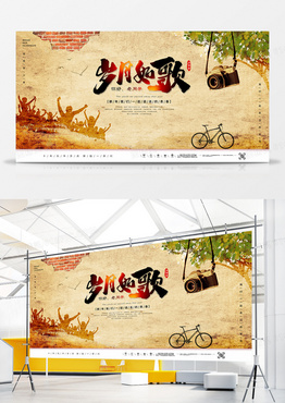 复古纸张同学聚会剪影毕业纪念岁月如歌宣传展板设计