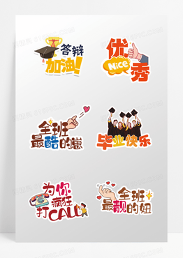手绘幼儿园大班毕业典礼拍照合影免抠元素