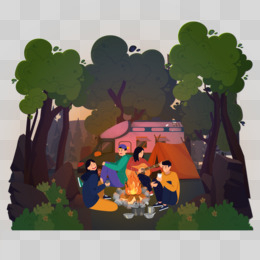 手绘毕业房车出行簇火晚会免抠元素