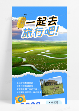 蓝色一起去旅行吧旅游民宿旅馆撕纸风旅游海报长图酒店