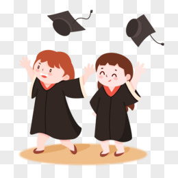 卡通同学女孩女生开心欢呼毕业照青春学士服 学位帽