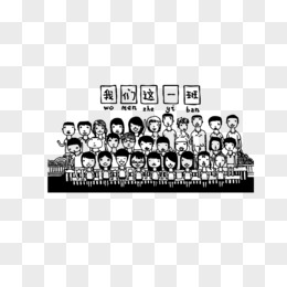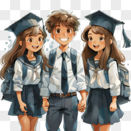 手绘卡通学生穿学士服多人合影留念插画免抠元素