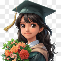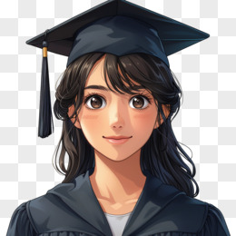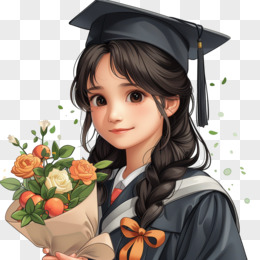 卡通毕业拍合影留念之女孩高抛学士帽元素