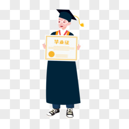 卡通穿着学士服的大学女生抱着手捧花免抠元素