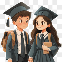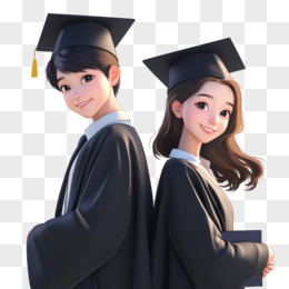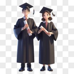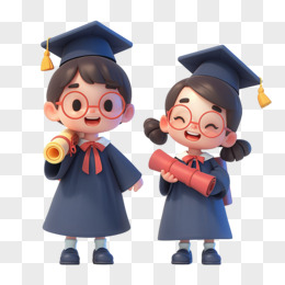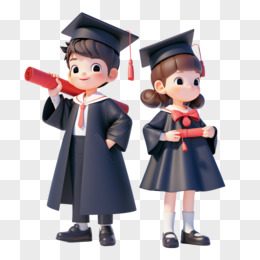 卡通穿学士服的男孩和女孩拍照免抠元素