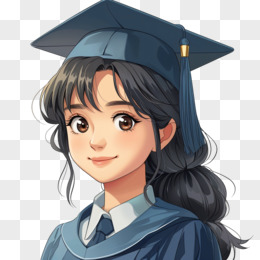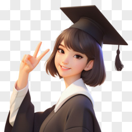 卡通穿着学士服的女初中生抱着手捧花免抠元素