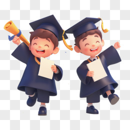 卡通穿着学士服的两个小男孩点赞拍照免抠元素