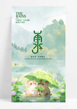 传统二十四节气插画风雨水万物新生长图海报
