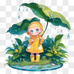 手绘卡通雨水节气下雨避雨免抠元素