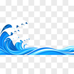 蓝色卡通波浪浪花手绘