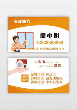 几何曲线波浪橙色家政保洁保姆钟点工名片模版