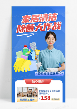 手绘卡通擦窗户拖地搞卫生免抠素材