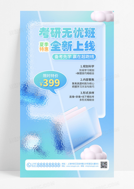 夏季考研班招生水波纹玻璃效果教育培训海报