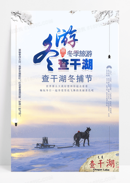 简约中国风清新冬季旅游查干湖捕鱼节海报