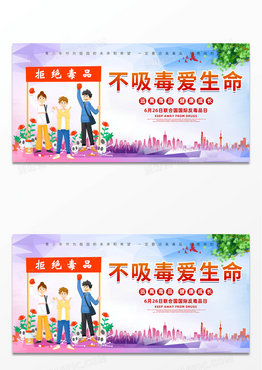 简约时尚创意不吸毒爱生命宣传展板