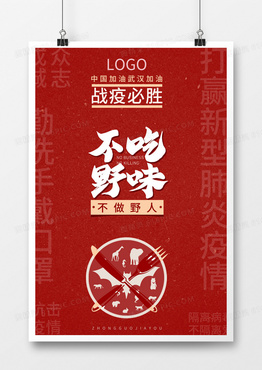 新冠肺炎红色海报不吃野味不做野人