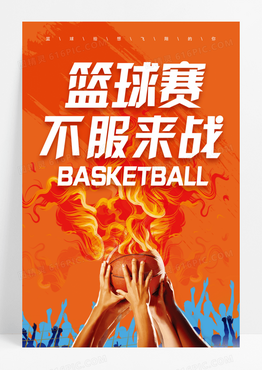 橙色卡通篮球赛不服来战篮球宣传海报
