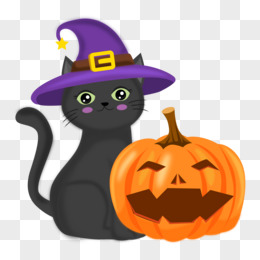 手绘卡通万圣节可爱黑猫魔法南瓜素材