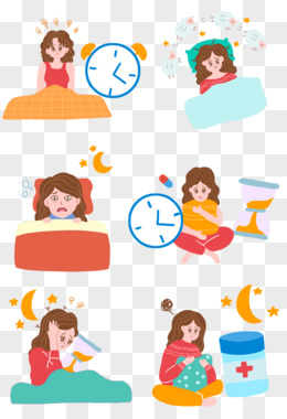 一组矢量卡通失眠焦虑人物合集套图免抠元素