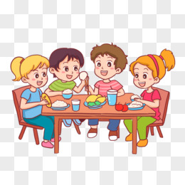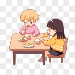 手绘卡通小朋友一起吃饭小孩免抠元素