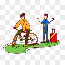卡通手绘男子向骑车的青年问路免抠元素