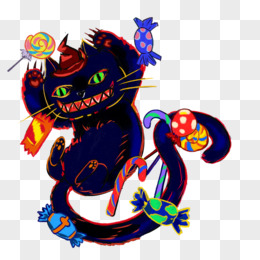 卡通手绘万圣节黑猫素材