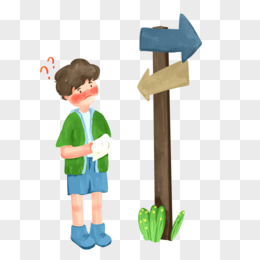 卡通手绘迷路小男孩素材