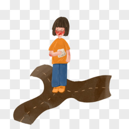 卡通手绘女孩在分岔口迷路元素