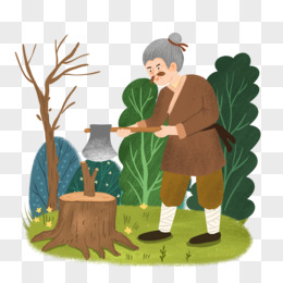 手绘卡通古装老人砍柴插画免抠元素
