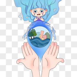 卡通手绘免抠水精灵守护地球水资源元素