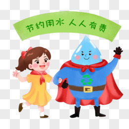 手绘卡通节约用水宣传素材水滴超人插图