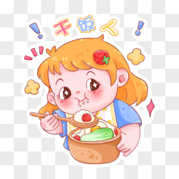 可爱小女孩开心大口的吃着炒饭免抠元素